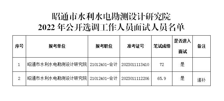 1.昭通市水利水電勘測(cè)設(shè)計(jì)研究院2022年公開選調(diào)工作人員面試人員名單
