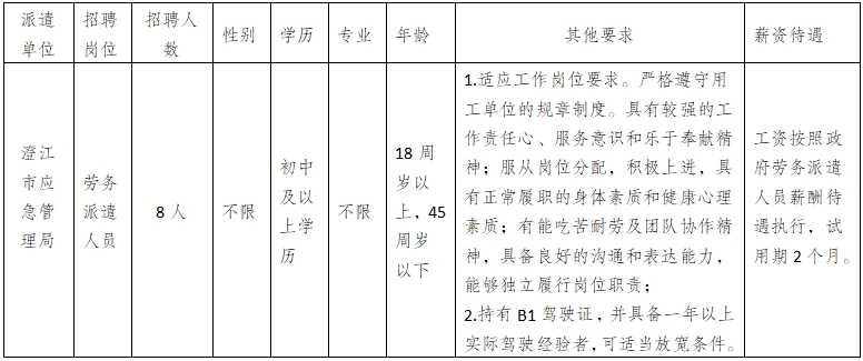 澄江市應(yīng)急管理局因工作需要,委托澄江市啟澄人力資源有限責(zé)任公司面向社會公開招聘政府專職消防員8名,招聘相關(guān)事項如下: