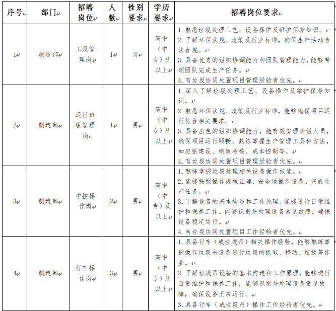 3.身體條件:身體健康,無恐高、高血壓等不適合一線生產(chǎn)崗位工作的疾病,具備一定的體力和耐力,能夠適應(yīng)垃圾處理現(xiàn)場的工作環(huán)境。