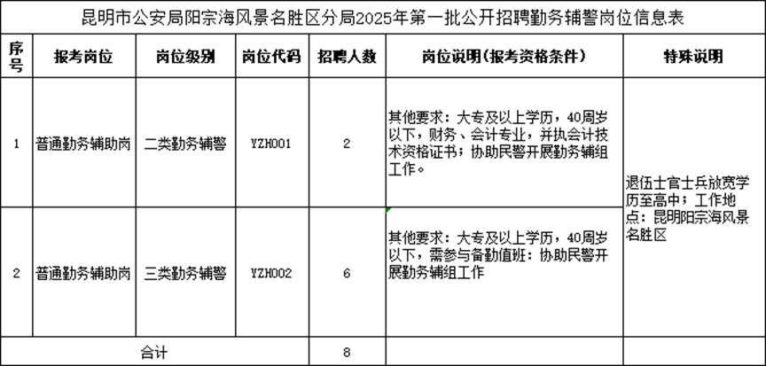 本次共招聘8人,崗位為“勤務輔警”,此崗位男性較為適合,詳見崗位信息表: