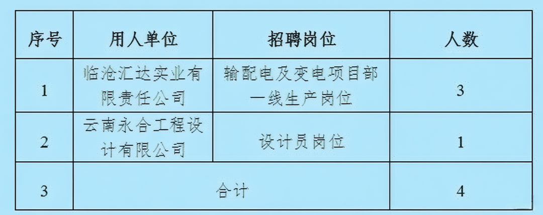 臨滄匯達(dá)實(shí)業(yè)有限責(zé)任公司(以下簡稱“臨滄匯達(dá)公司”)為滿足臨滄匯達(dá)公司本部及各單位用人需求,決定開展2025年校園招聘工作,現(xiàn)將招聘事項(xiàng)公告如下: